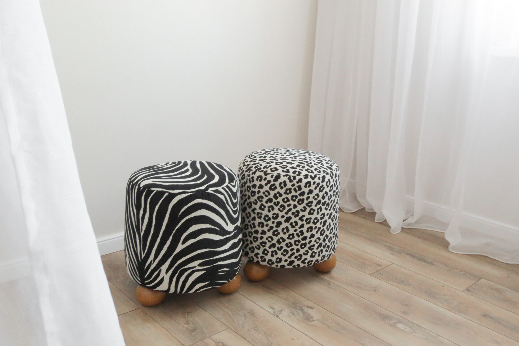 Стильный и уютный пуф из фактурного шенилла с леопардовым принтом. Приятный на ощупь, выглядит дорого и добавляет характер любому интерьеру. На круглых ножках из массива дерева